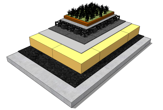 The Fatra insulated green roof system incorporates the PIR insulation board below the Fatrafol PVC membrane waterproofing system with the Fatra Armour protection layer, Fatra drainage cell, filter fabric and vegetation layer to create the perfect green roof system. This system is simply installed directly over the existing failed membrane.