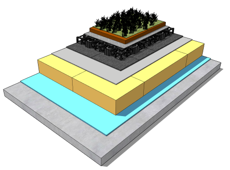 The Fatra insulated green roof system incorporates the PIR insulation board below the Fatrafol PVC membrane waterproofing system with the Fatra Armour protection layer, Fatra drainage cell, filter fabric and vegetation layer to create the perfect green roof system. This system is simply installed directly over the existing failed membrane.
