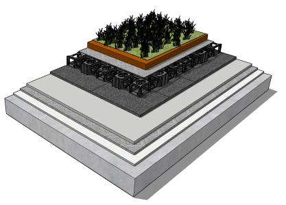 The Fatra Armour protection mat is installed directly over the PVC membrane to provide protection to the waterproofing system from any sharp edges and pertruding items which might be present in the green roof overlaying finishes