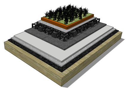 The Fatra Armour protection mat is installed directly over the PVC membrane to provide protection to the waterproofing system from any sharp edges and pertruding items which might be present in the green roof overlaying finishes