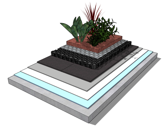 The Fatra planter box system incorporates a protection layer of FatraTex 300gsm geotextile fabric over the existing membrane to provide protection to the Fatrafol PVC membrane. The Fatrafol 810v PVC waterproofing membrane can be loose laid or spot fixed directly over the FatraTex geo-textile protection layer. The system is protected by Fatra Armour protection mat prior to the installation of the Fatra drainage cell, filter fabric and vegetation layer. The specifications for the different layers will depend on the client’s objectives, requirements and project specific specifications. Fatra provides all components for our planter box systems making it simple and convenient for our approved applicators.