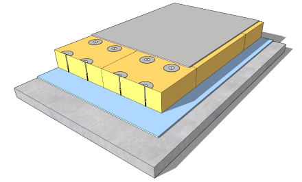 The PIR insulation is installed over the existing failed membrane and is mechanically fixed using approved fixings and telescopic tubes. The FatraPad system is secured to the structure in accordance with AS1170 Part 2.