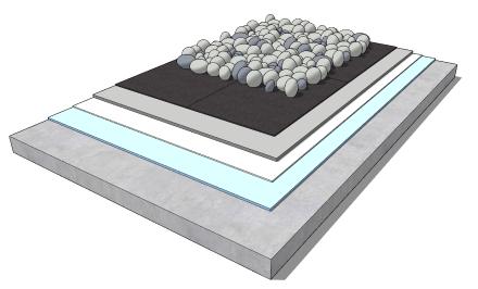 The Fatra ballasted system can be implemented with a number of different types of ballast. Including pebbles, adjustable chairs/pedestals and pavers or even floating timber decks can be used to ballast the PVC membrane system into place.