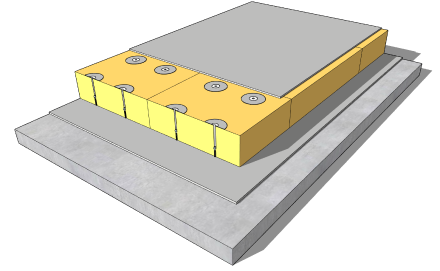 The Fatrafol 810v reinforced membrane is installed over the PIR insulation. The Fatrafol 810v is bonded to Fatra Australia's uniquely engineered Pad system which is fused to the fixing system creating a none penetrative mechanically fixed system.